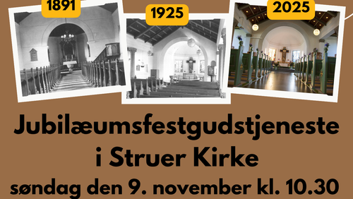 Vi fejrer udvidelsen af Struer kirke i 1925. Kirken blev bygget i 1891, men i årene derefter fordobles antallet af indbyggere i Struer og der var derfor allerede i 1925 brug for en udvidelse af kirken. Derfor byggede man sideskibene til.